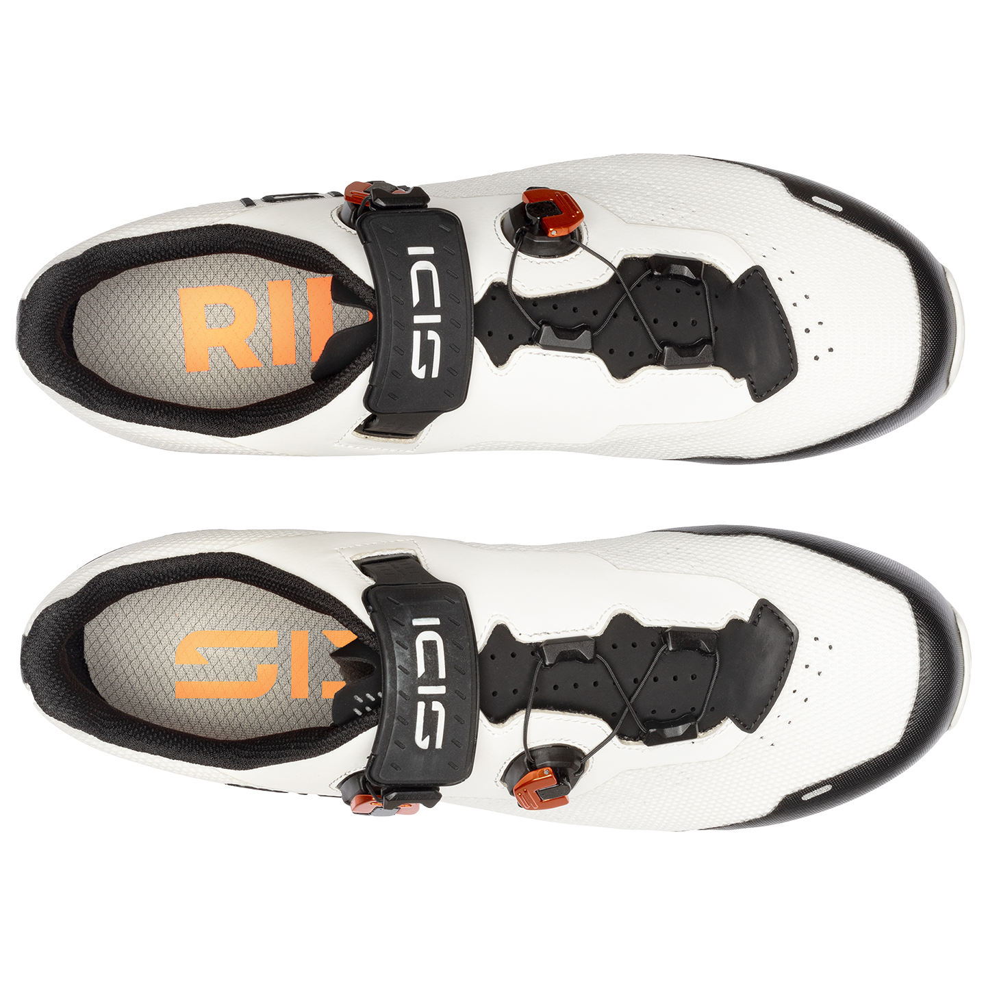 - 001C Drehverschlüssen für perfekte Anpassung des Schuhs auch während der Fahrt. Gefertigt aus Aluminium und im Windkanal für perfekte Aerodynamik optimiert.