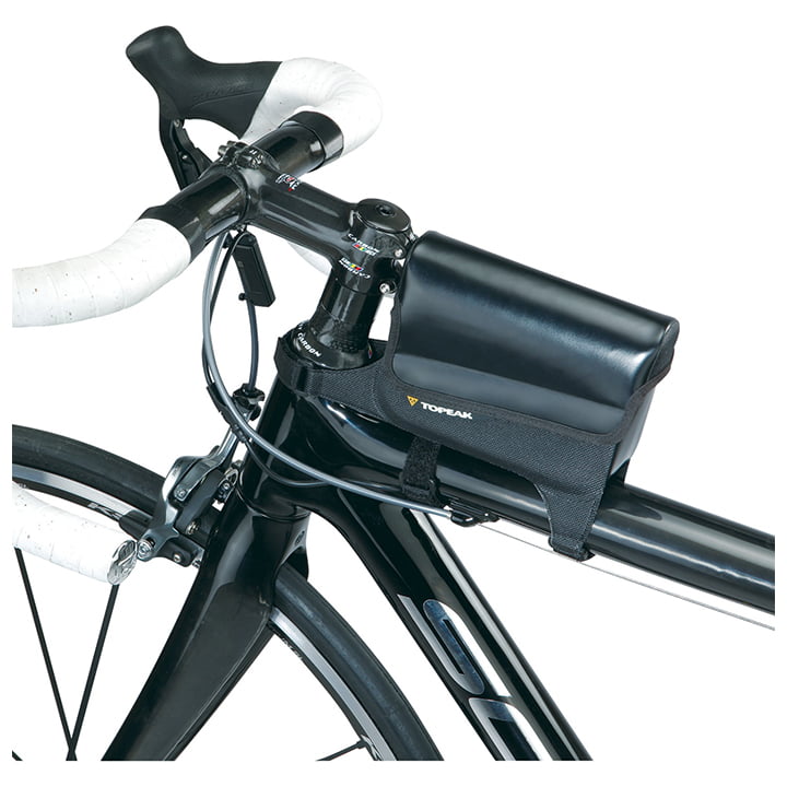 Große TriBag-Tasche aus wasserdichtem Material mit verschweißten Nähten für Touren bei regnerischem Wetter. Der TriBag kann am Oberrohr befestigt werden und bietet somit optimalen und schnellen Zugriff auf Energieriegel oder Zubehör.