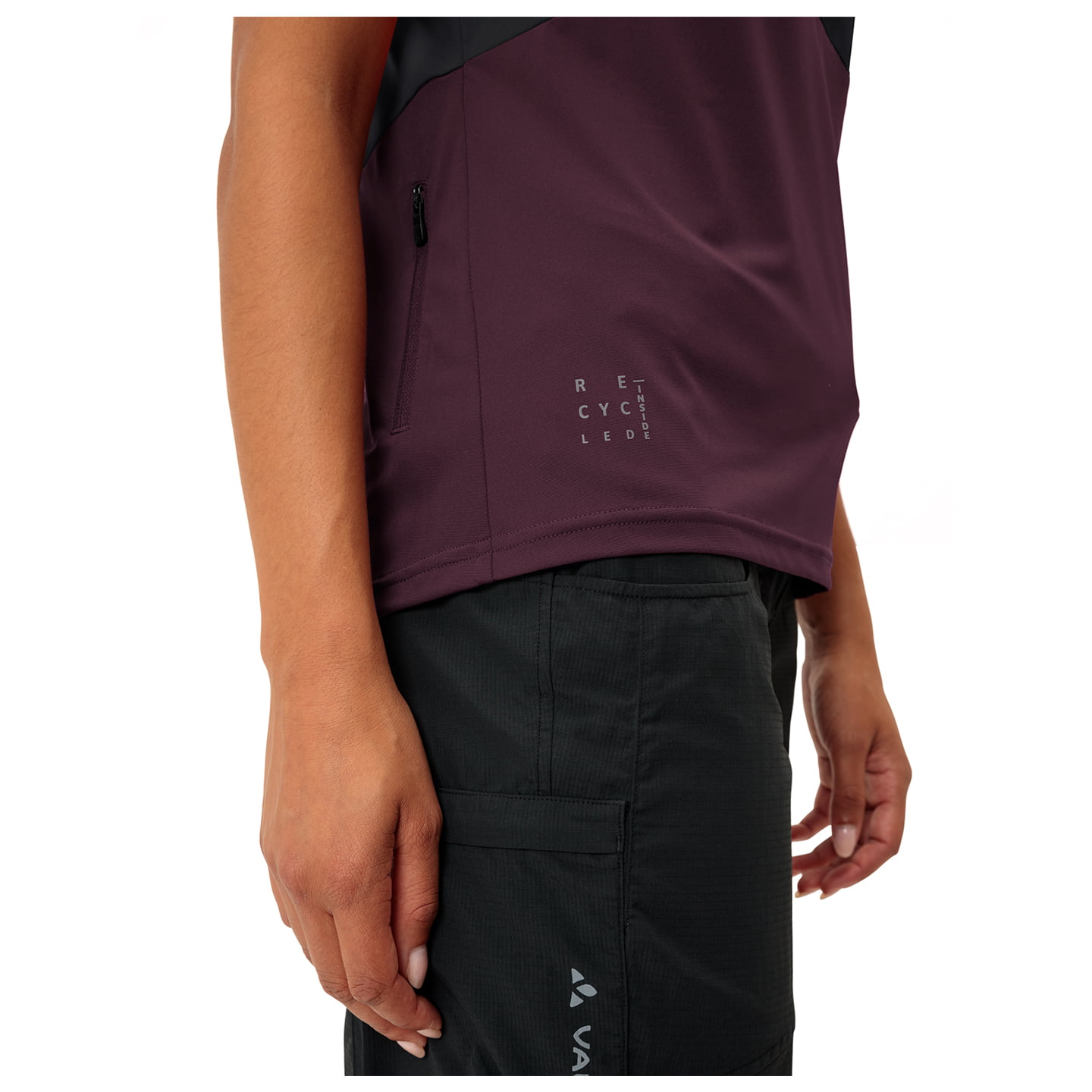 Material: Brust und oberer Rücken:100% Polyester; Bauch, Ärmel und unterer Rücken: 89% recyceltes Polyester, 11% Elasthan