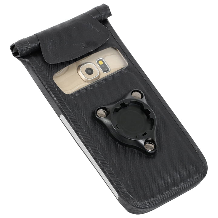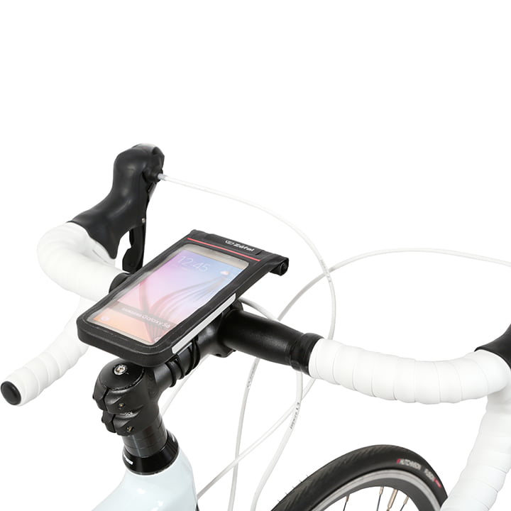 This water resistant smartphone sleeve mounts to your handlebar simply with a click. Your phone is protected from wind, weather and dirt. And, the best thing about it is you can leave your smartphone inside the sleeve during your ride, as it features a touchscreen compatible surface and a rear window for the camera. The mount allows you to rotate your phone horizontally or vertically.