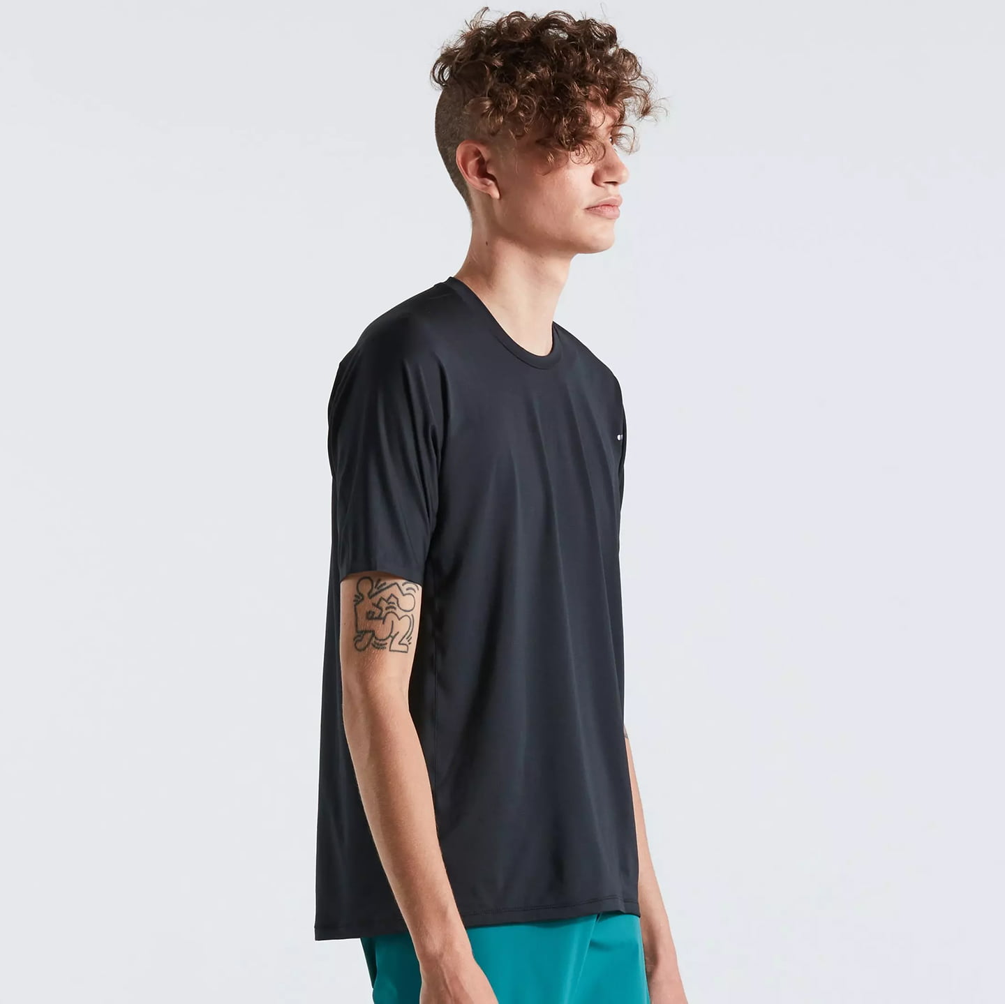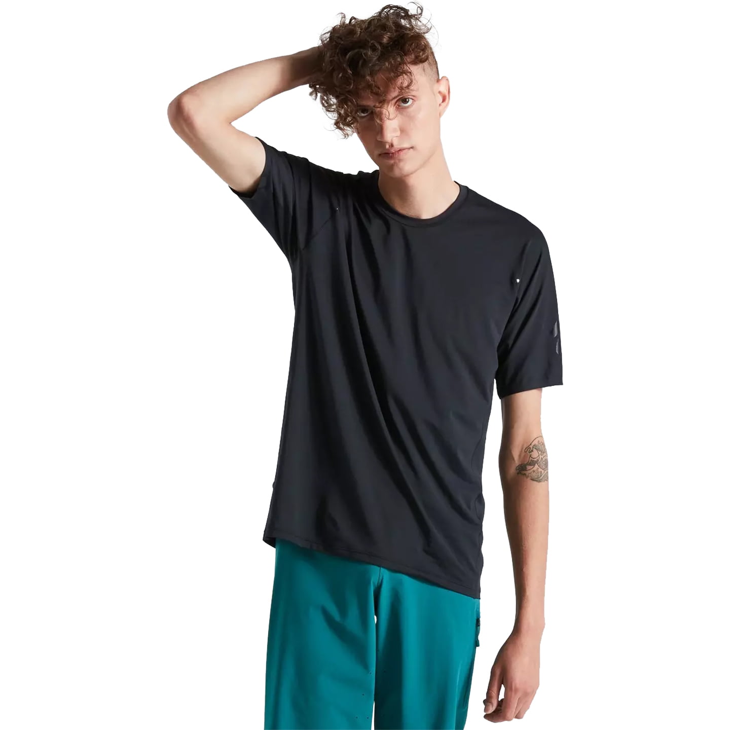 Maillot BTT informal que promete una excelente gestión de la humedad. El ajuste clásico de BTT con cuello redondo es maravillosamente cómodo. El tejido ligero de poliéster reciclado mantiene tu cuerpo seco y también destaca por su muy buena transpirabilidad y una protección UV FPS 30.