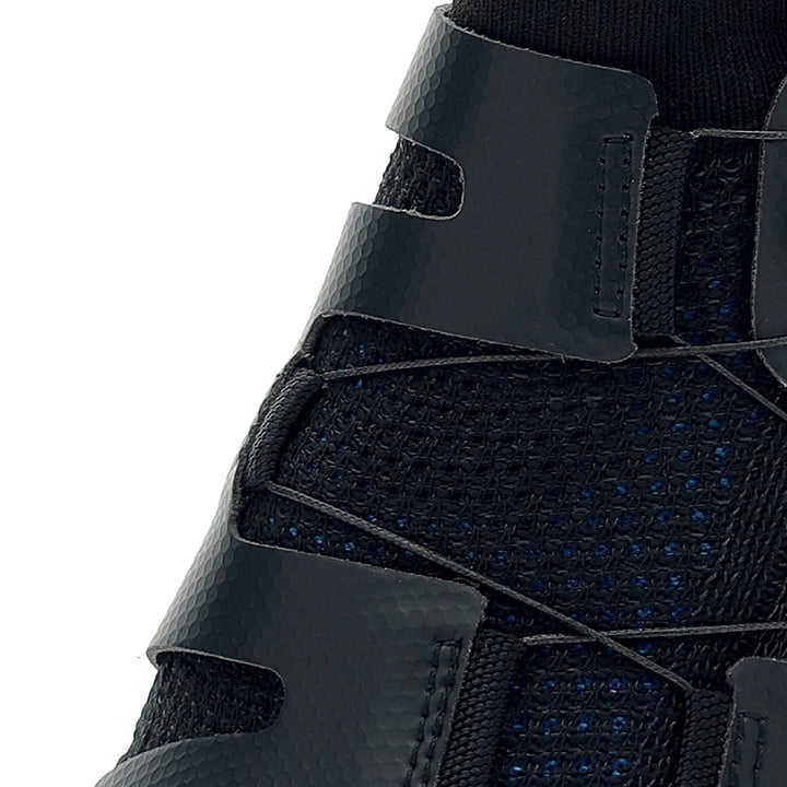 Cuando se trata de zapatillas deportivas y zapatillas para correr, las zapatillas superiores de punto súper cómodas están en uso desde hace mucho tiempo. Se trata de una innovación en las zapatillas de ciclismo, que deben proporcionar un ajuste firme en el pie para transferir la potencia de manera eficiente. Los maestros del tejido, UYN, simplemente han integrado la zapatilla superior de punto súper transpirable en un marco sólido, que proporciona la estabilidad necesaria y una sujeción firme. La construcción de tejido 3D de doble capa envuelve el pie como un calcetín, sin costuras, sin lengüeta, con ventilación constante. No hay huellas de presión, sudor ni mal olor de pies. Los estabilizadores laterales adaptables entre las capas de tejido evitan un deslizamiento en la zapatilla. El marco de plástico exterior fija el metatarso y el talón. En combinación con una suela de carbono compuesto muy rígida y un sistema de cierre de giro micro preciso, las zapatillas de carretera ahora ofrecen una comodidad de uso incomparable y la mejor transmisión de potencia. ¡No funciona no existe!