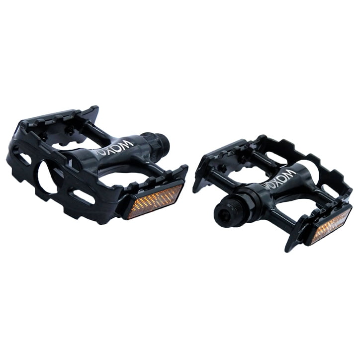 Pédale plate pratique en noir pour un look chic. Les réflecteurs intégrés offrent une meilleure visibilité. Le bord dentelé assure l'adhérence.