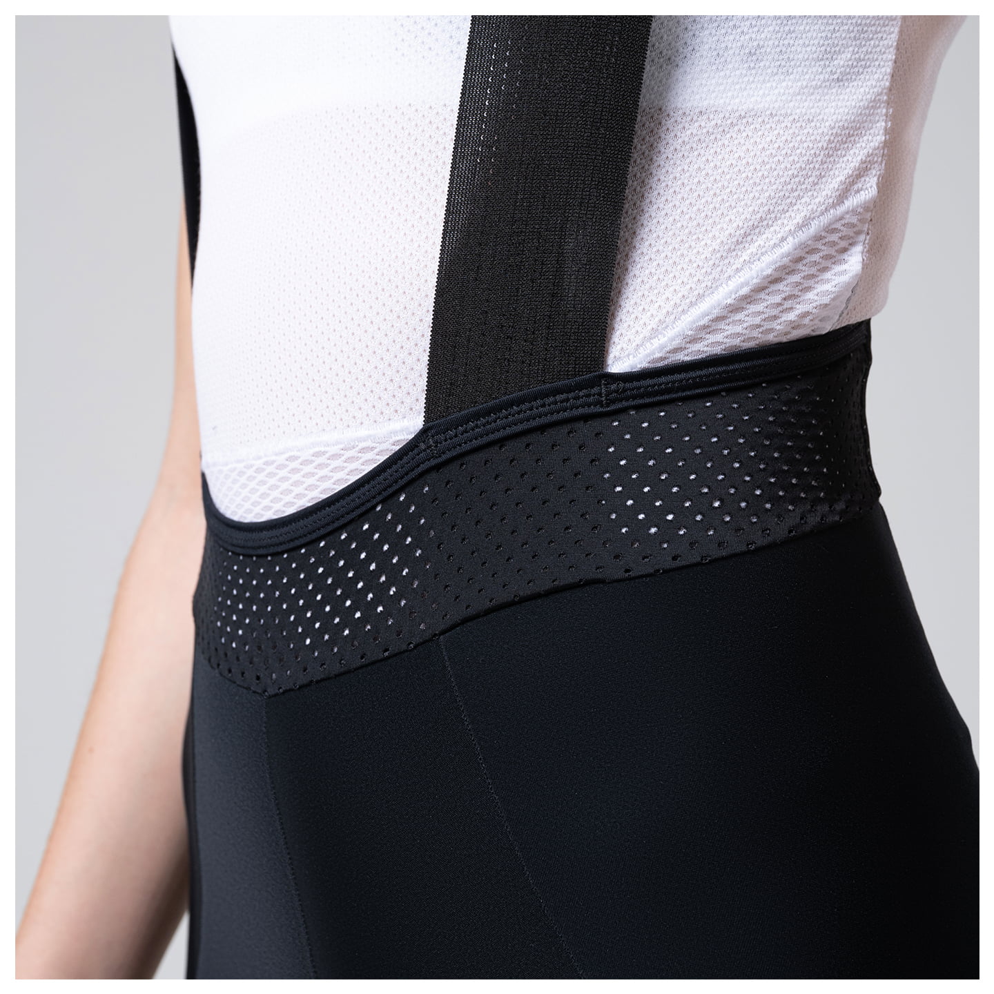 - sezione pettorale leggera con bande elastiche in Graphene termoregolanti e sezione posteriore in microfibra traforata.