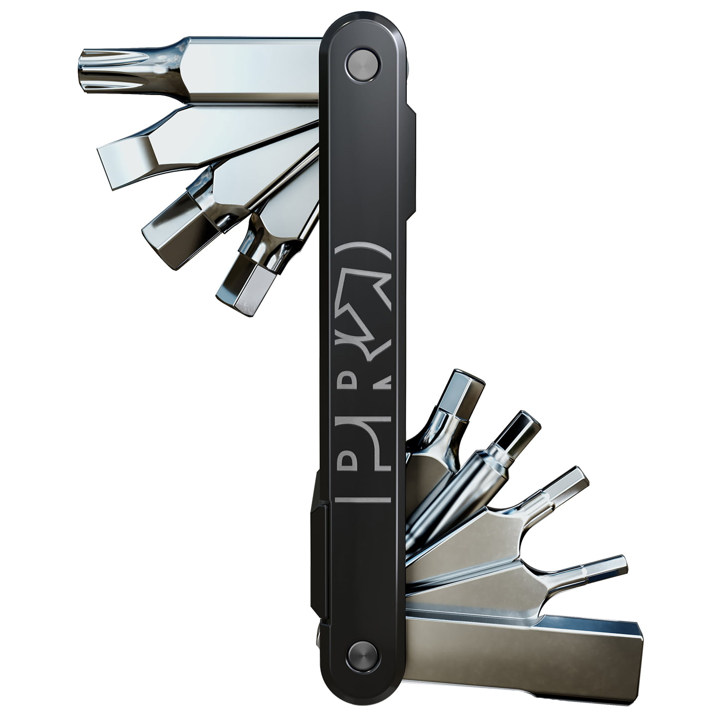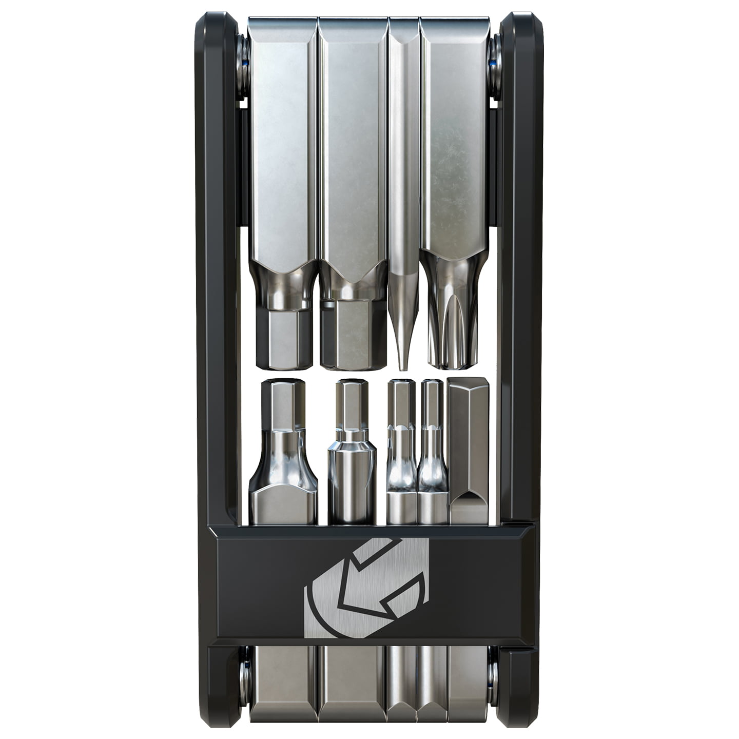 Utensile estremamente compatto con 9 funzioni. Questo miniattrezzo è realizzato in alluminio leggero con rivestimento in cromo di alta qualità.