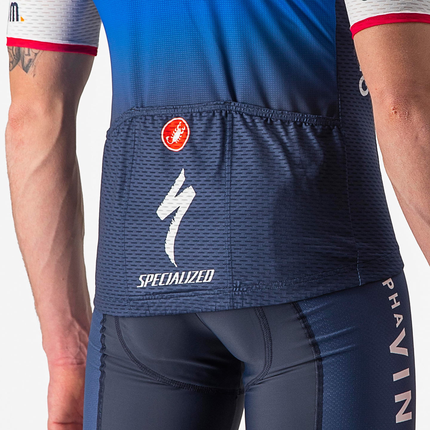 - nauwsluitende pasvorm, specifiek voor de wielersport