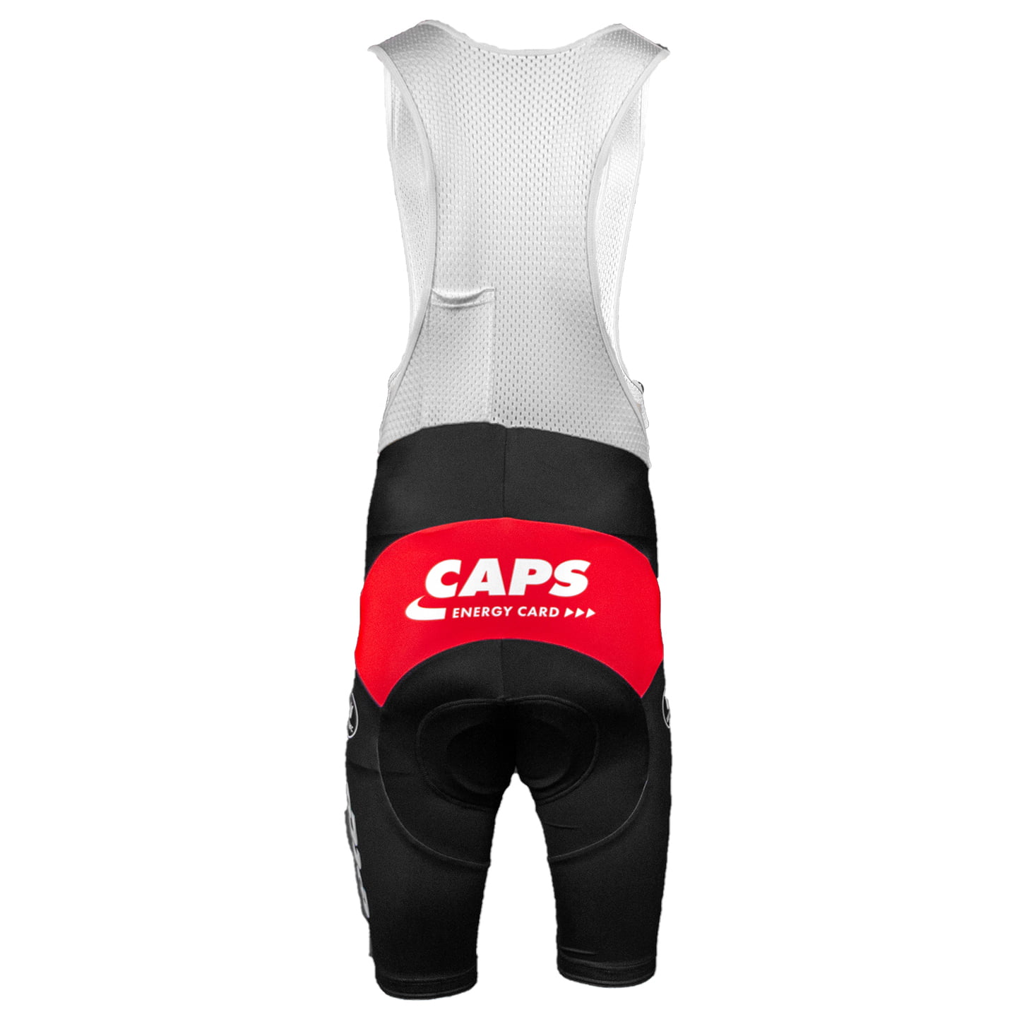 Korte koersbroek van de officiële kledingsponsor met het actuele teamdesign uit elastisch, functioneel lycra. Bovendeel met bretels uit actief ademend mesh met kleine zak. Anatomische meerpandensnit. Elastische beengrippers.