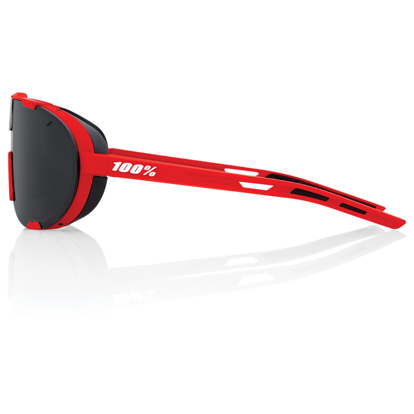 Nowe okulary sportowe Westcraft marki 100% przyciągają wzrok swoim niezwykłym designem. Kształtem przypominają okulary lotnika. Boczne osłony (są odpinane) chronią przed promieniami słonecznymi i wiatrem z boku, jak gogle lodowcowe. Nowo opracowany mechanizm wymiany V-Latch sprawia, że wymiana soczewek jest dziecinnie prosta. Soczewki barwione są używane jako soczewki mono. Przezroczyste soczewki są używane jako 2 pojedyncze szkła. Powstały w ten sposób otwór u nasady nosa poprawia wentylację. Soczewka sferyczna jest zakrzywiona zarówno w poziomie jak i w pionie. W ten sposób światło jest doskonale załamane, a zniekształcenia lub zaślepienia są redukowane. Te wysokiej jakości okulary przeciwsłoneczne są uniwersalne dla każdego sportu na świeżym powietrzu. Oprawka TR90 Grilamid jest niełamliwa i elastyczna. Wysokiej jakości soczewki poliwęglanowe są zarówno odporne na olej, jak i wodę oraz na zarysowania.