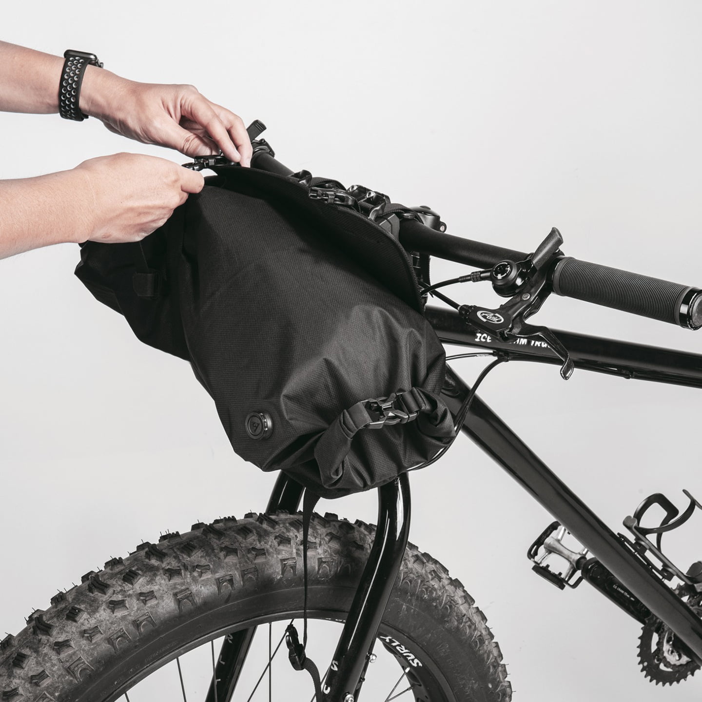 Idealne do bikepackingu lub dłuższych wycieczek rowerowych! Frontloader wykonany z wytrzymałych, odpornych na ścieranie i materiałów odpychających wodę jest idealny do transportu lekkich i nieporęcznych przedmiotów takich jak śpiwór, sprzęt kempingowy i odzież zapasowa. Wyposażony w solidny system mocowania, można go łatwo zamocować i zdjąć z kierownicy za pomocą dwóch pasów, specjalnych gumowych dystansów i zapięć Quick-Release. Mocowanie paska z tyłu na rurze sterowej zwiększa stabilność ładunku. Wodoodporny i wytrzymały worek pakowy (8 l) skutecznie chroni zawartość przed wodą i brudem. Za pomocą zaworu można go również łatwo skompresować.